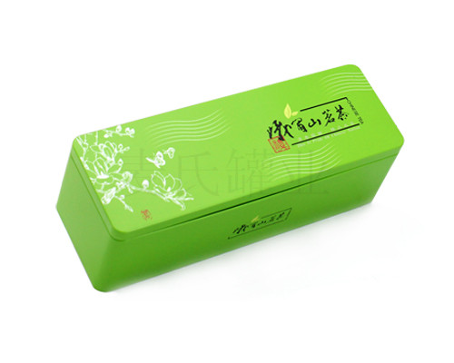此款長(zhǎng)方形綠茶鐵盒是用來(lái)包裝茶葉的一種金屬包裝鐵盒,印刷美觀,適宜保存,大批量定制價(jià)格低,麥?zhǔn)瞎迾I(yè)可定制各種尺寸相關(guān)的信陽(yáng)毛尖茶鐵皮盒子,是的茶葉馬口鐵盒生產(chǎn)加工廠家。