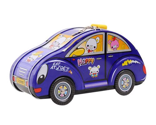 兒童卡通汽車鐵盒,汽車形狀餅干包裝鐵盒定制工廠