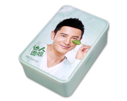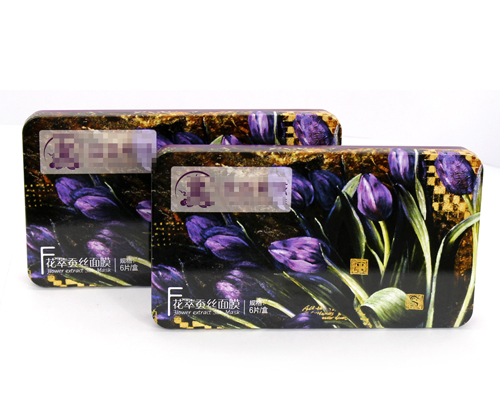 此款方形蠶絲面貼膜鐵盒包裝在印刷方面,鐵盒版面設計簡約大方,醒目,加深消費者對面貼膜產品品牌的宣傳。