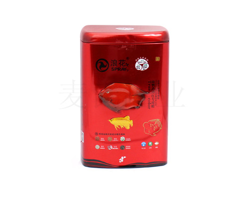 此款魚糧鐵包裝盒為麥氏罐業(yè)為廣大客戶推出的魚糧鐵包裝盒, 此款魚糧鐵包裝盒子的規(guī)格為 150*100*300mm。鐵罐的印刷工藝 為CMYK+1專,外過水性亮光油,內(nèi)涂透明油,客戶可根據(jù)自身產(chǎn)品的需求選擇啞油、皺紋 油、爆炸油、珠光油、金油等印刷工藝。