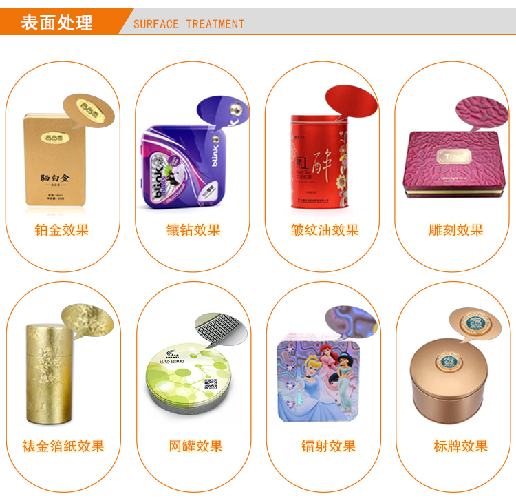 此款馬口鐵圓罐茶葉鐵罐包裝為單面CMYK四色印刷處理,外過水性亮光油,內涂金油,過油目的不僅能提高鐵盒整體效果,具有強烈的金屬質感外,還對鐵盒印刷面形成一層致密的保護膜,對鐵罐刮花、防銹起到一定的防護作用。除了過光油、透明油外,客戶還可選擇過皺紋油、珠光油、爆炸油等。