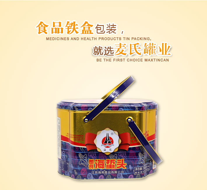 大號海蜇手提鐵罐子定制——麥氏罐業(大海蜇馬口鐵罐包裝廠家),我司生產手提海蜇金屬鐵罐包裝12年,采用高科技自動化制罐生產線結合,為您研發更、更快速的大號海蜇手提鐵罐子產品.