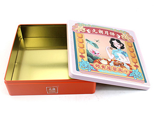 這款馬口鐵月餅食品鐵盒的尺寸為225*225*63mm,為了順應多樣化的市場包裝需求,這款月馬口鐵盒可做成心形、正方形、橢圓形、車形、書本形等異形造型。