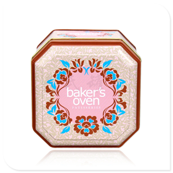 此款曲奇餅干八角罐子為三片罐,外卷線天地蓋設計,材質為0.23mm鍍錫馬口鐵制成。是一款熱銷的定制型金屬包裝盒,同時你可選擇除馬口鐵外的磨砂鐵,進行制作。鐵盒印刷為膠印方式,單面四色,內外涂布水性光油,足以提升鐵盒的整體金屬質感。