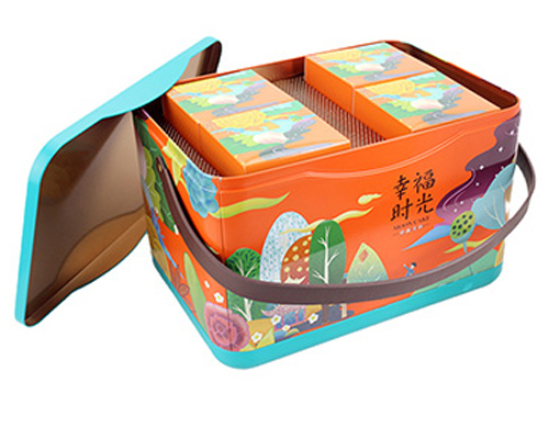 這款馬口食品鐵盒包裝為單面CMYK四色印刷處理,外過水性亮光油,內涂金油,過油目的不僅能提高鐵盒整體效果,具有強烈的金屬質感外,還對鐵盒印刷面形成一層致密的保護膜,對鐵罐刮花、防銹起到一定的防護作用。除了過光油、透明油外,客戶還可選擇過皺紋油、珠光油、爆炸油等。