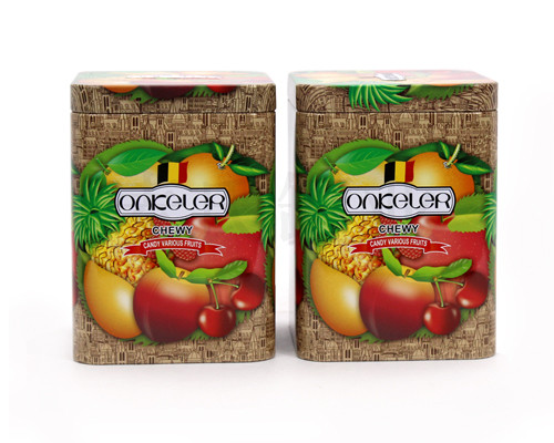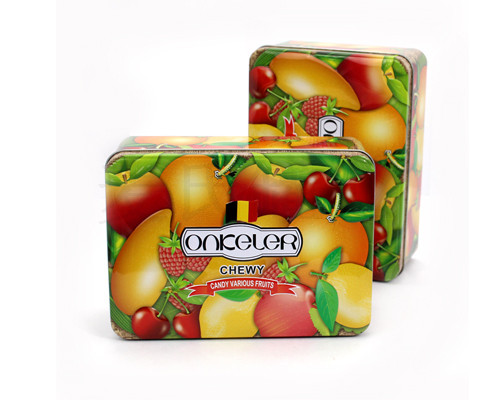 水果軟糖鐵盒包裝訂做,為一款精美別致,堅固實用的鐵盒包裝,版面設計時尚精美,可讓消費者產生一種眼前一亮的感覺。消費者的購買欲望。使得此款水果軟糖鐵盒包裝在消費者心中久久不能忘卻!