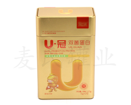 很多平蓋益生菌固體飲料鐵盒上都有臺階,臺階的功能在于方便同一尺寸的鐵盒相互重疊,這非常方便的商場貨架上堆放產(chǎn)品并且有效利用貨架空間。這款益生菌固體飲料鐵盒,采用國產(chǎn)一級馬口鐵為基材,專色印刷工藝。想了解更多嬰幼兒保健品鐵盒包裝,請致電:186-7632-2818,清遠麥?zhǔn)瞎迾I(yè)恭候您的到來!
