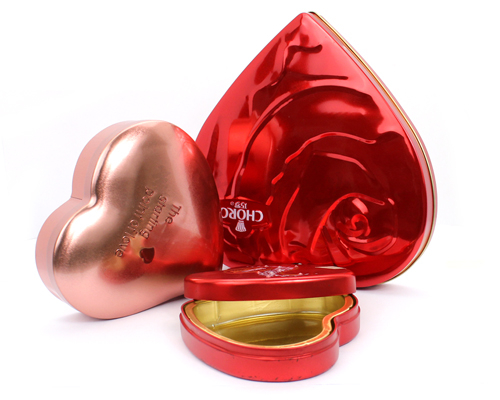 心形巧克力鐵盒,婚慶糖果包裝鐵盒廠家麥氏罐業公司擁有1000多套模具任你選擇,近萬平米生產基地歡迎來廠考察。