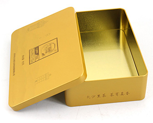 這方形通用茶葉鐵罐包裝為單面CMYK四色印刷處理,外過水性亮光油,內(nèi)涂金油,過油目的不僅能提高鐵盒整體效果,具有強烈的金屬質(zhì)感外,還對鐵罐印刷面形成一層致密的保護膜,對鐵罐刮花、防銹起到一定的防護作用。除了過光油、透明油外,客戶還可選擇過皺紋油、珠光油、爆炸油等。