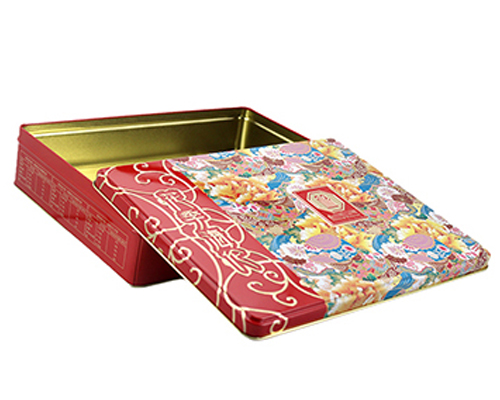 這款正方形五仁月餅鐵盒的尺寸為235*235*70mm,為了順應多樣化的市場包裝需求,這款糖果馬口鐵盒可做成心形、正方形、橢圓形、車形、書本形等異形造型。